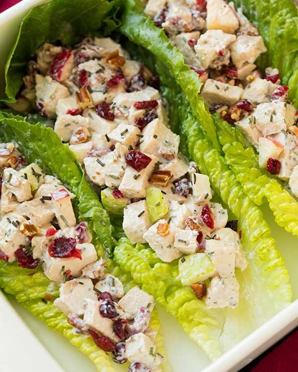 griechischer Joghurt Kann den Ort vieler gesättigter Fettbestandteile wie Frischkäse, Öl, Butter, Sauerrahm, Buttermilch-und in diesem Rezept, Mayo, nehmen. Füllen Sie die Salatboote mit diesem herkömmlichen, erfrischenden Hühnersalat, um eine tolles Niedrig-Carb-Mahlzeit zu füllen.
