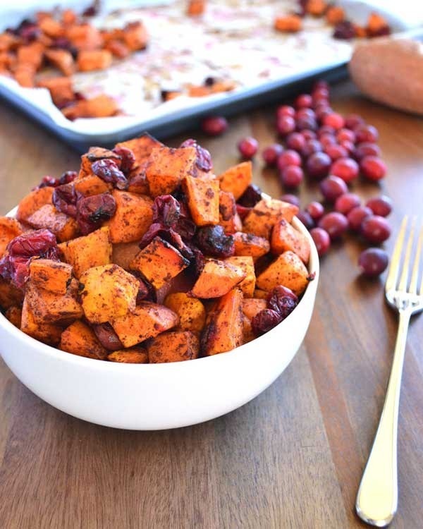 Zimt geröstete Süßkartoffeln und Preiselbeeren