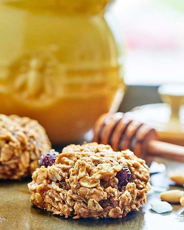 Ernährung (pro Cookie, Erträge 12): 157 Kalorien, 5,5 g Fett (2,9 g gesättigt), 112 mg Natrium, 23,6 g Kohlenhydrate, 2,3 g Faser, 7,8 g Zucker, 3,7 g Protein