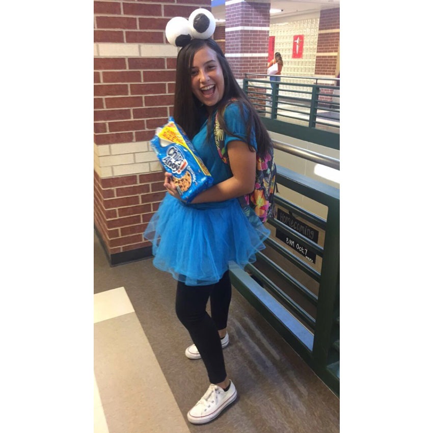 Dieses Cookie-Monster-Kostüm verdoppelt auch als "Leben der Partei" -Fostüm, da Sie die ganze Nacht um eine Kiste mit Keksen tragen können.