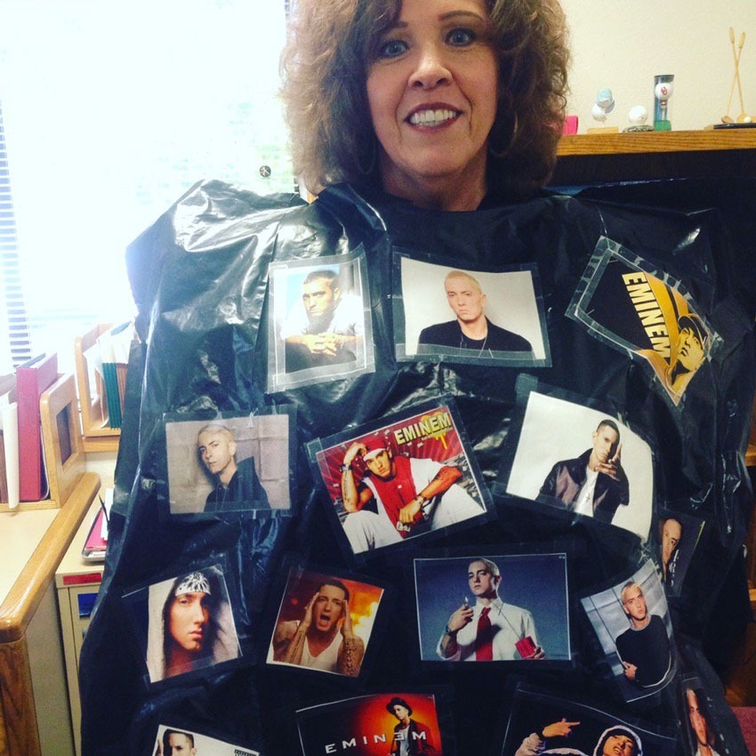 Kombinieren Sie Ihre Liebe zu Süßigkeiten mit Ihrer Faszination mit der Faszination in diesem Last-Minute-Kostüm. Alles, was Sie tun müssen, sind Bandausdrucke des Rapper, Eminem, auf einen schwarzen Müllsack und Voila! Du bist eine Tasche von M & M's!