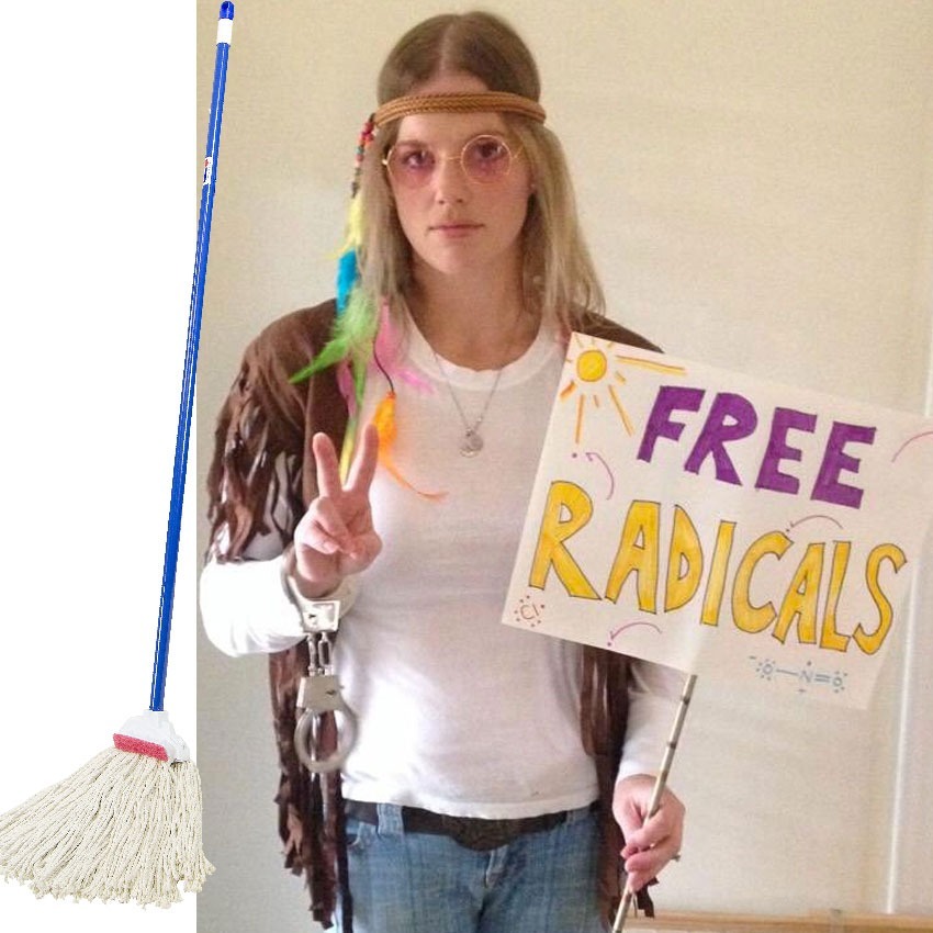 Das ist für alles, was Sie da draußen sind. Um Ihr Gedächtnis aufzufrischen, sind Antioxidantien die Superverbindungen, die in Früchten und Gemüse gefunden werden, die dna-schädigende freie Radikale, die verursachen könnenEntzündung, Krebs und geistiger Rückgang. Um dieses Kostüm abzuschließen, verkleiden Sie jemanden wie einen freien (freigegebenen Handschellen) "radikal" (Hippie). Um das Antioxidans zu sein, alles, was Sie tun müssen, ist, den freien Radikal mit einem Mopp zu jagen!