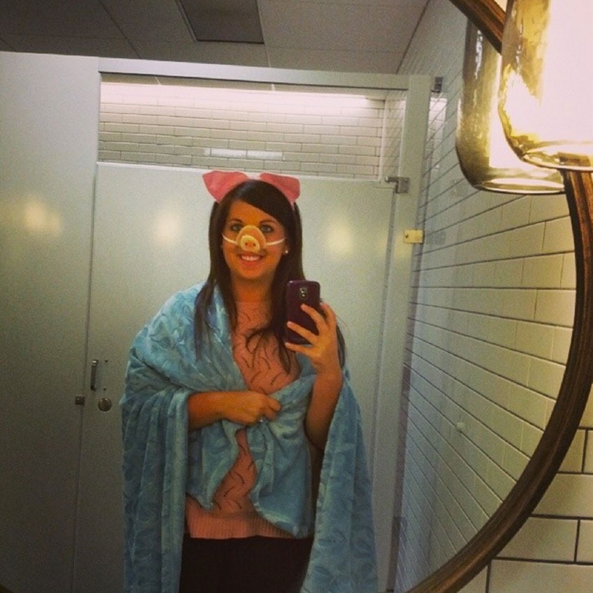 Nutztiere sind ein klassischer Halloween-Go-to. Nehmen Sie Ihr Schweinkostüm auf das nächste Level von Funny, indem Sie einfach (oder Sie und einen Freund) in einer Decke einwickeln, um in Ihren Lieblings-Spiel-Tag-Vorspeisen zu werden. Sie bleiben warm und beeindrucken Ihre Freunde mit Ihrem cleveren Outfit.