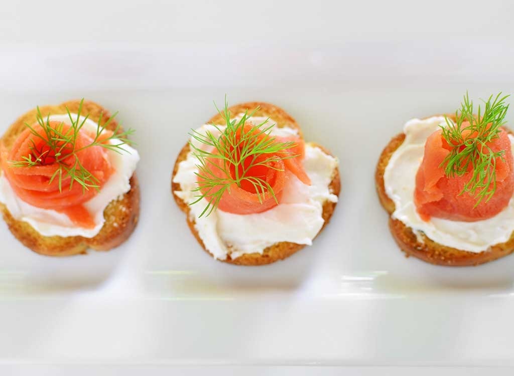 "Breilachs mit Zwiebeln, Gewürzen, Salz und Pfeffer. Zeug die Mischung in die Hälfte einer rohen Paprika", empfiehlt, Tom, residenter ErnährungCal-A-Vie Health Spa. "Lachs enthält Omega-3-Fettsäuren, die dazu beitragen, depressive Symptome zu lindern, während DHA für die allgemeine Gehirngesundheit unerlässlich ist. Inzwischen ist der rohe Bell Pepper eine gesunde Alternative für Brot für jedenwenig-Kohlenhydrate-Diät. "