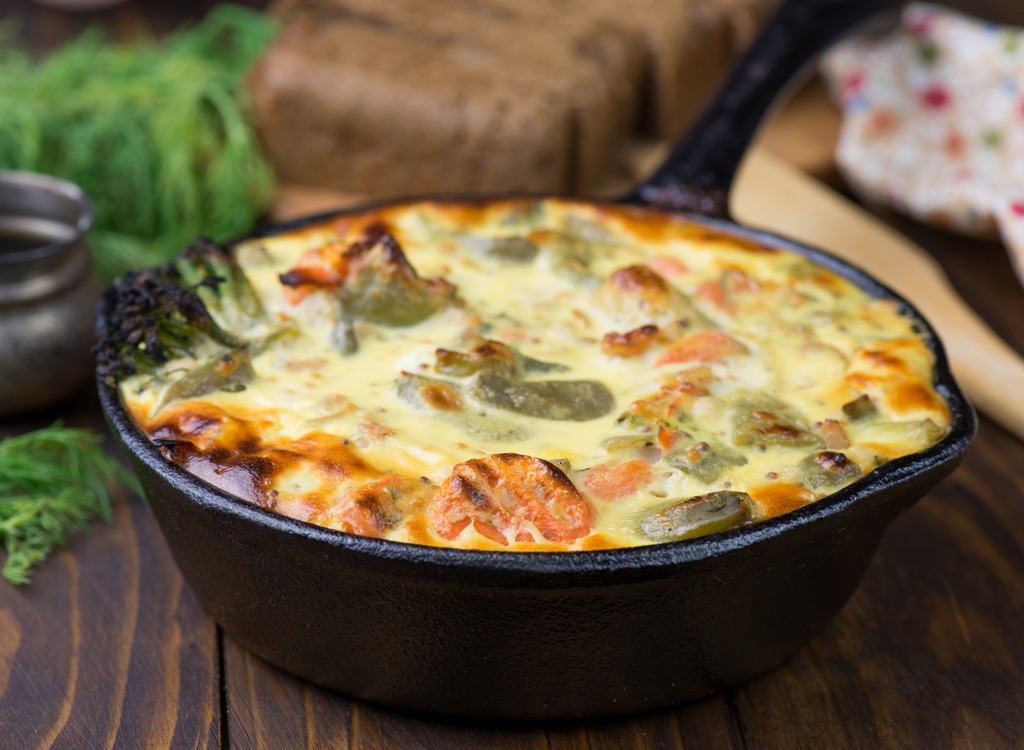 "Eier sind eine ausgezeichnete Quelle von Cholin, ein B-Vitamin, das ein Schlüsselspieler im zentralen Nervensystem ist", sagt Tom. "Studien haben gezeigt, dass Menschen mit niedrigen Cholinebenen mehr Angst haben." Holen Sie sich Ihre Füllung, indem Sie Eier mit gehacktem Gemüse, Salz und Pfeffer füllen. Dann backen Sie sie inMuffin-Dosen um den Portionsgrößen zu halten, die gesteuert werden.