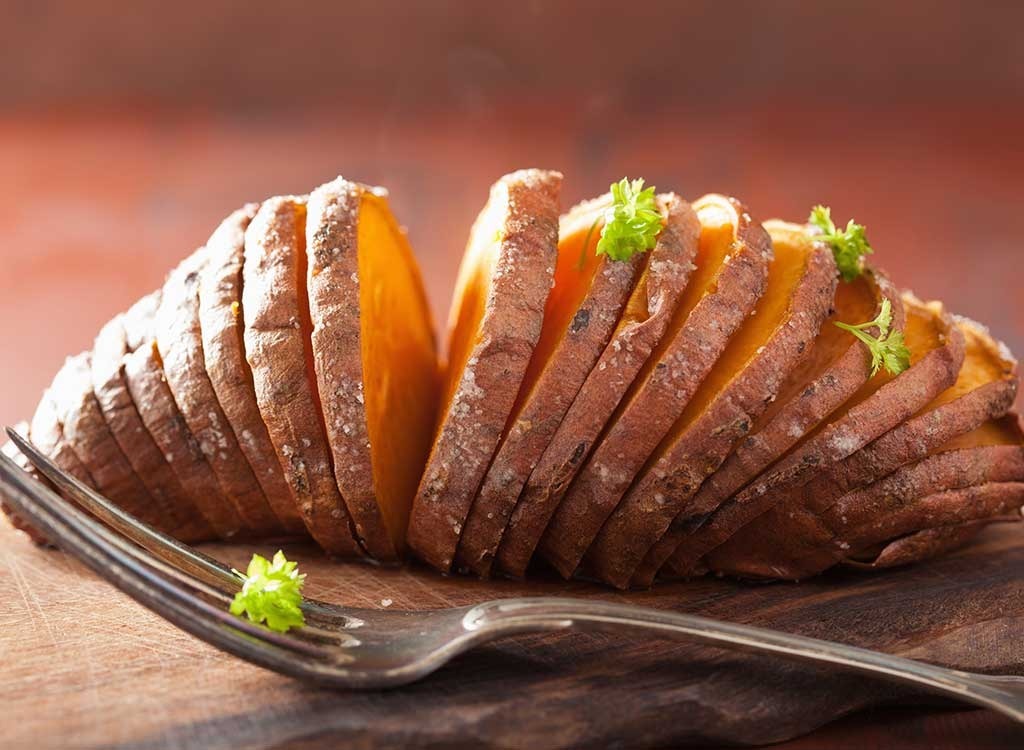 Schneiden Sie eine süße Kartoffel auf und pop es im Toaster. Als nächstes streuen Sie es mit etwas Zimt und Walnüssen. "Eine süße Kartoffel ist eine großartige Quelle für komplexe Kohlenhydrate, die dazu beitragen, den Niveau von Serotonin zu erhöhen, einem Neurotransmitter, der die Stimmung reguliert", sagt Tom. "Der Zimt und die Walnüsse werden auch Blutzucker ausgleichen."
