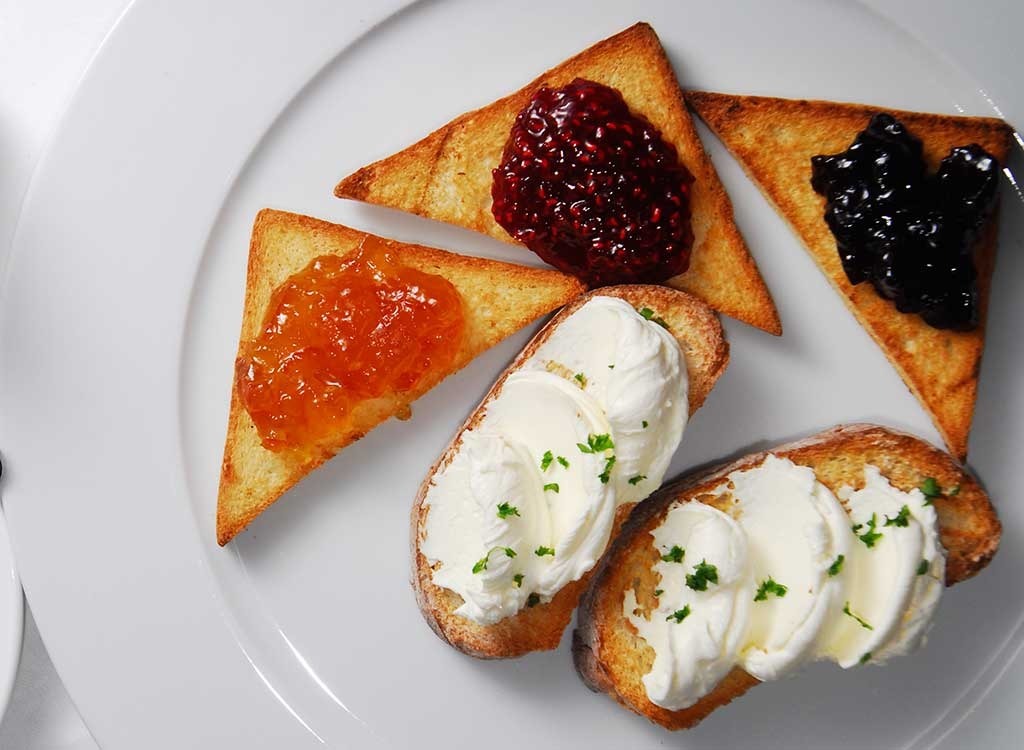 Butter ist eine Kombination aus Butterfett, Milchfeststoffe und Wasser; Entfernen Sie die Milchfeststoffe und des Wassers, und Sie werden mit Ghee Aki-Butter-Butter-A-Butter-Alternative gelassen, die Ihnen hilftRückenlehne auf Milchprodukte. "In diesen Tagen ist es mit Butter und mit Ghee raus", sagt Brown. "Streuen Sie Ihren Ghee-geschichteten Toast mit Zimt für ein süßes und salziges Frühstück." Zimt ergibt diese Option zusätzliche Brownie-Punkte, da es Appetit bei der Unterdrückung des Appetits hilft, es kann dazu beitragen, den Blutzuckerspiegel zu senken, und arbeitet, um das Risiko für Herzkrankheiten zu reduzieren.