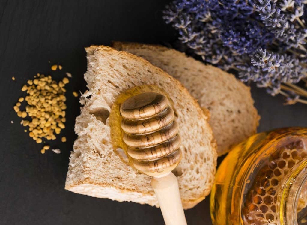 Sonnenblumenkerne helfen, Bauchfett zu kämpfen, und Bienenpollen wird mit B12 geladen, wodurch die Kombination eine fantastische Option für Toast, laut Braun. Bienenpollen wird auch mit Eiweiß geladen, also ist dies ein großartigernach dem Training Snack.