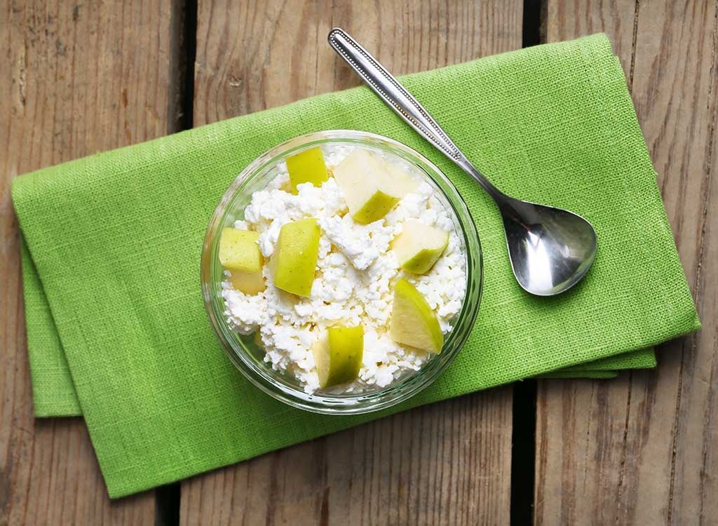 "Cottage-Käse ist eine großartige Eiweißquelle, während Apfelscheiben diesen wünschenswerten Kribbeln hinzufügen", sagt Brown, der empfiehlt, auch einen kleinen Zimt für zusätzliche Aroma und Blutzucker profitieren zu können.