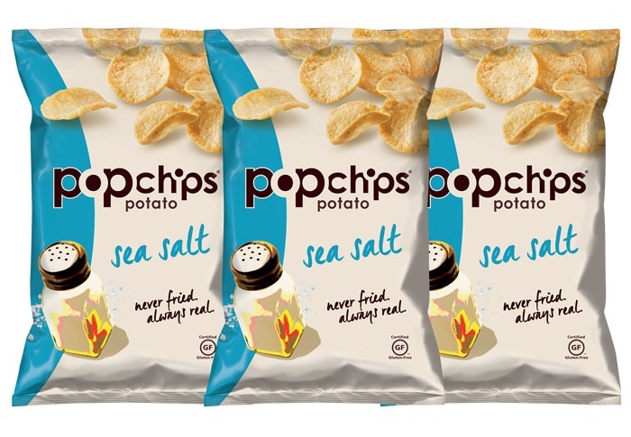 Popchips 'Einzigartiges Verfahren zum Erwärmen der Kartoffeln in einer unter Druck stehenden Kammer verleiht den kreisförmigen Chips ihre Markenform. Sie sind mit Oleic-Ölen, gesunde monounsätierte Fette beschichtet, die den Appetit reduzieren können, fördernGewichtsverlustund Bolster-Speicher. Sprechen Sie über eine dreifache Bedrohung!