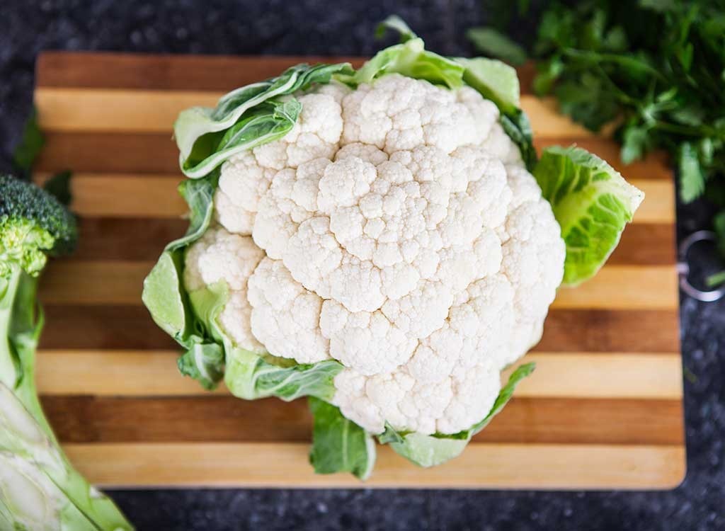 "Ersetzen Sie Blumenkohl für Reis durch feiner Hacken von Blütenkohlklagen in einem Küchenmaschine", schlägt Fistrovich vor. "Erhitzen Sie eine große Pfanne mit Olivenöl, fügen Sie den gehackten Blumenkohl hinzu, fügen Sie Kräuter, um die Saison hinzuzufügen, und kochen Sie bis leicht braun. Dies ist eine köstliche doch einfache Möglichkeit, mehr Gemüse in Ihre Ernährung zu infundieren." Liebe es? Dann wirst du diese lieben17 Geniusideen zum Kochen mit Blumenkohl, auch.