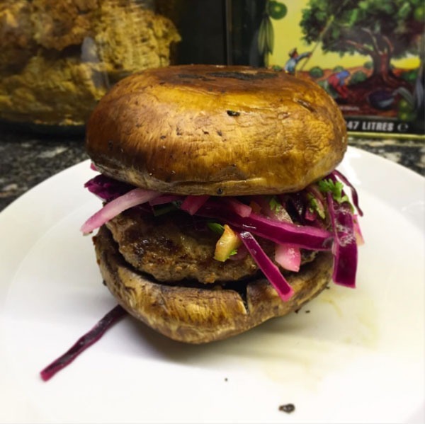 Portobellos sind diese großen, runden Pilze über die Größe Ihrer Faust. Wenn die Stiele geschnitten werden, sind sie fast genau die gleiche Form und Dicke wie ein Burger-Brötchen. Es ist, als würde Mutter Natur sagen, dass Sie einen Burger-Patty zwischen zwei dieser Jungs halten. Mit ihrer vollkommenen Größe, des herrschaftlichen Geschmacks und der kalorienarmen Zählung machen sie einen tollen Swap für traditionelle Burger-Brötchen. Plus, diese gesunden Burger-Brötchen geben Ihnen einen Tritt vonFaser Um dich fulser zu fühlen, länger!