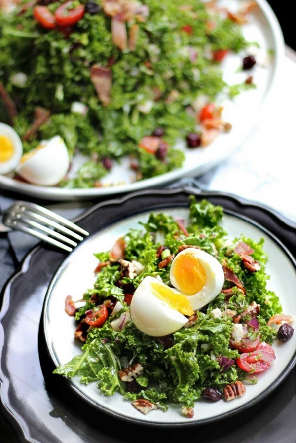 Werfen Sie den Toast und nehmen Sie Ihr BLT auf ein Bett aus Grünkohl; Es ist eine taillfreundliche Möglichkeit, Ihren Tag auszuziehen. Weiche gekochte Eier und Avocado-Verstärker der Faser undProtein Inhalt, um sicherzustellen, dass Ihr Morgenmehl Sie voll und ganz in den Nachmittag findet.