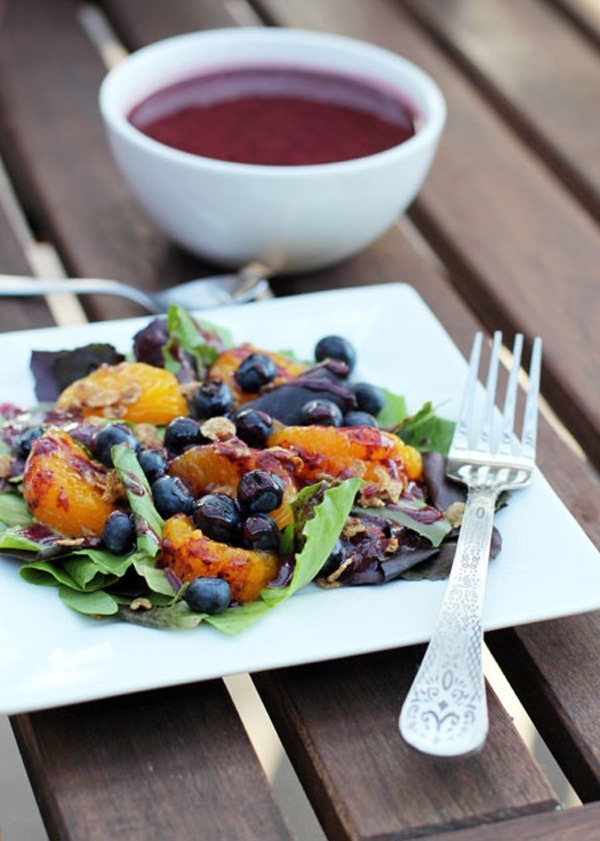 Bauchfettverbrennungsblaubeer, Orangen, knackiges Müsli, und herzhafte Salatgrüns mit einer leichten Blaubeer-Vinaigrette, um diesen leichten und erfrischenden Salat zu erstellen. Um Zucker hinzuzufügen, um Ihre Frühstücksschüssel zu überholen, peitschen Sie das Gericht mit einem davongesunde Müsli.