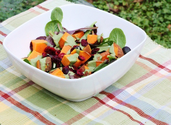 Süßkartoffel-Frühstückssalat mit Mandelbutter-Protein-Dressing