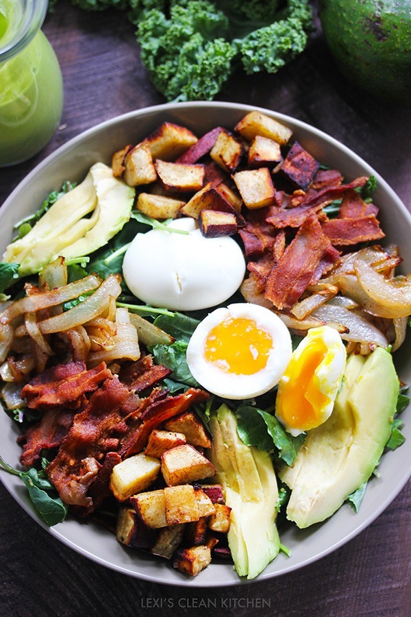 Hier um das essen, nicht das!, Es gibt zwei Dinge, auf denen wir immer auf der Suche nach sind:Gesunde Frühstücksideen und neue, köstliche Möglichkeiten, mehr Früchte und Gemüse zu essen. Aus diesem Grund freuen wir uns, dass Frühstückssalate an Popularität gewinnen. Ja, du hast dieses Rechtsfrühstück gelesenSalatSchnitte Diese spezielle Salatmarke hat alle traditionellen Machen von einer gesunden Schale von Grünen, aber infundiert traditionelle Morgen-Mahlzeit-Zutaten wie Speck,Eierund Obst. Was ist nicht zu lieben?