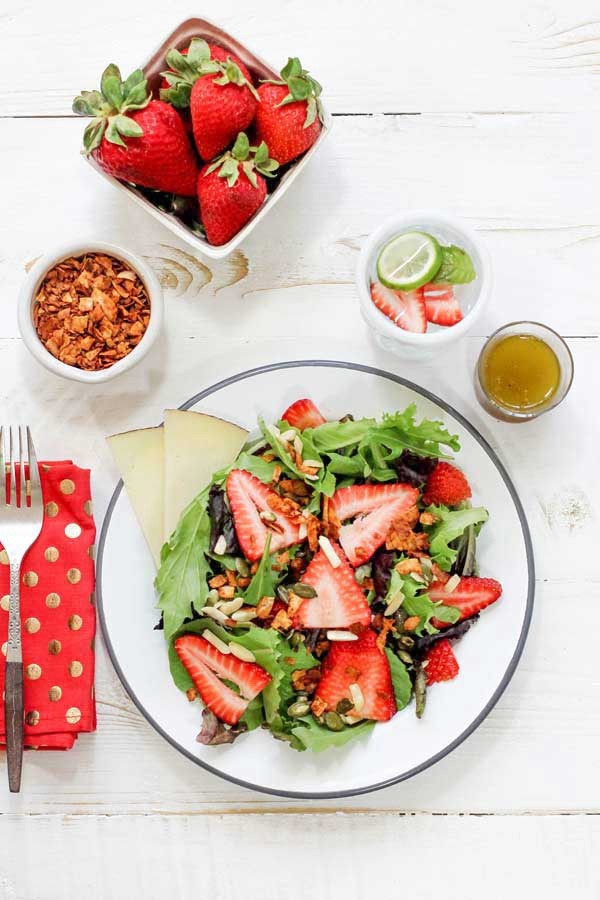 Erdbeersalat mit Kokosnuss-Bacon & Black Pepper Vinaigrette