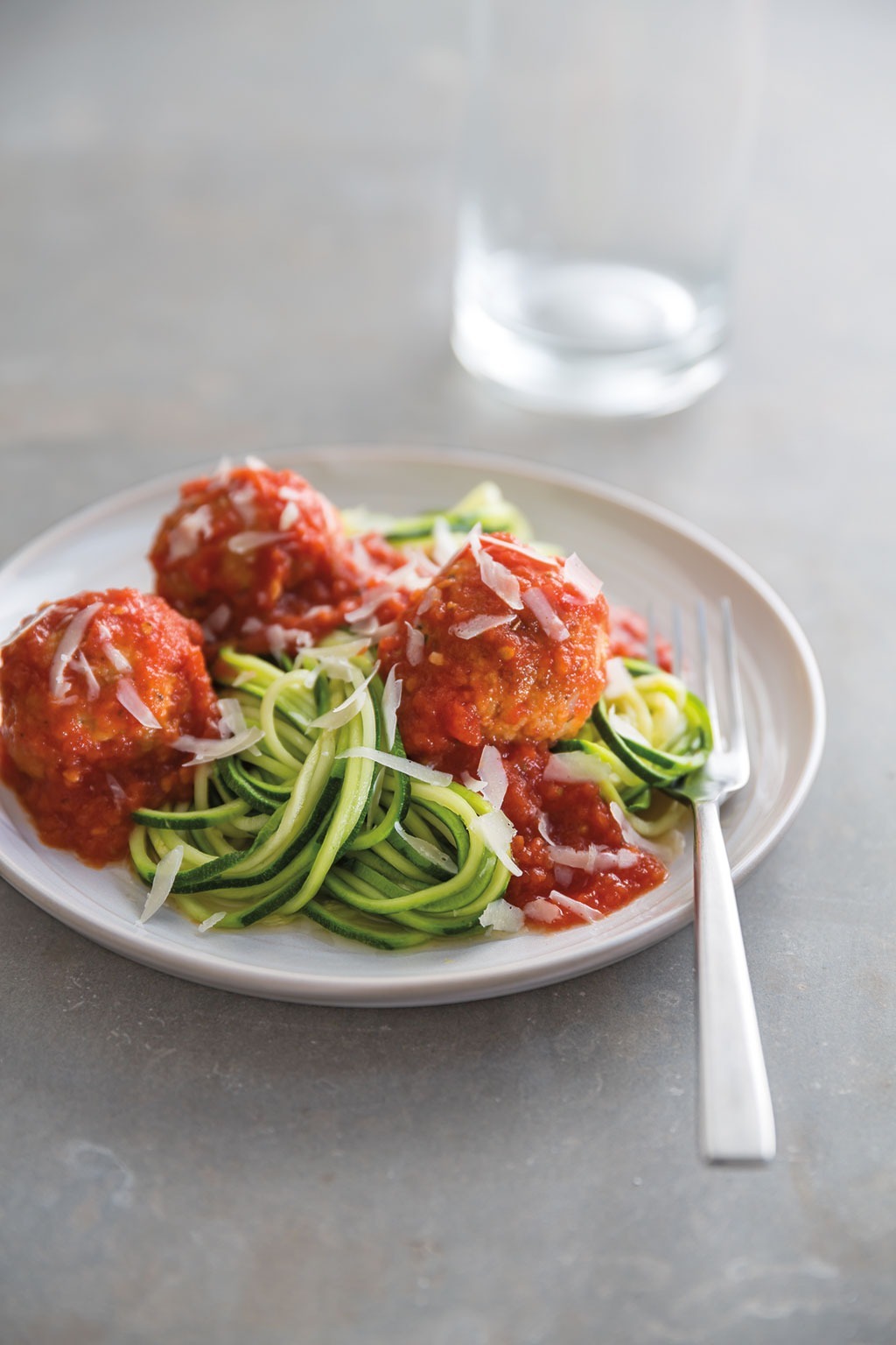 Zucchini Spaghetti mit Truthahn-Fleischbällchen