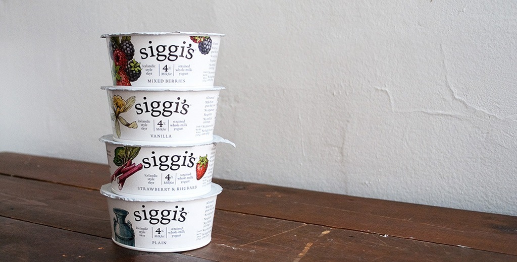 Was ist "Skyr"? Es ist der traditionelle Joghurt von Island, der durch Inkubieren von Milch mit lebhaften aktiven Kulturen, dann die wässrige Molke weg, die nach oben schwebt, und den Joghurt-Cremiger verlässt als andere Sorten. Die 4% Milchfat-Sorten von Siggi liefern 10 Gramm Protein für nur 8 Gramm Zucker, was ihr Verhältnis unter den gesündesten auf dem Markt macht.