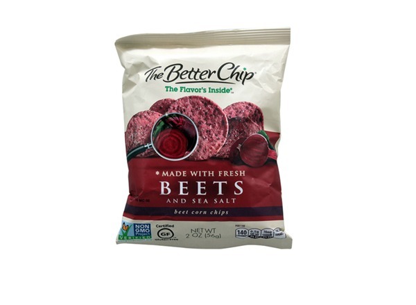 Wir empfehlen, diesen purpurroten Chips zu geben, auch wenn Sie kein Fan von Rüben sind. Gemacht vonVollkorn Mais, Masa-Mehl, Rüben, Öl- und Meersalz, diese gesunde Alternative zu Chips ist knackig und befriedigend. Aber weit noch wichtiger, schmecken sie lecker - ähnlich wie Mais-Chips, aber mit einem darunter liegenden Hauch von Rüben. Du bist sicher, ihren erdigen, leicht süßen Geschmack zu lieben.
