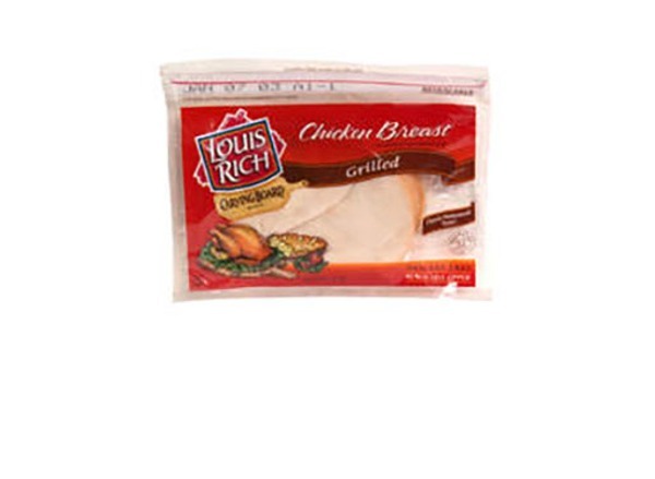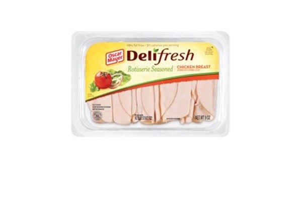 Gut ja. Drei Scheiben Oscar Meyer Ofen Röstes Huhn hat und ist mit Karamellfarbe gebräunt. Essen Sie das Carving Board von Louis Rich statt.