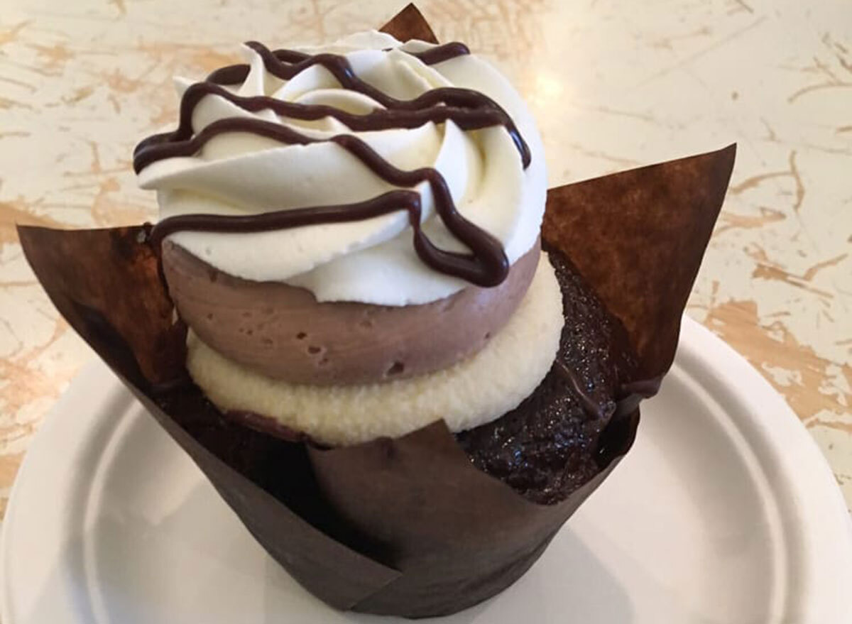 Wir haben ein Verlangen nach Verlangen! Dieser Shop kribiert preisgekrönte Cupcakes - siegewonnene Saison 7 vonMuffin Kriege. Mit dem Motto "Sie stellen Sie sich vor - wir schaffen es," werden Sie nie von ihren kreativen Kreationen müde werden, wie dieser Schokoladen-Mousse-Käsekuchen-Cupcake, voller dekadenter Schokoladenganache.