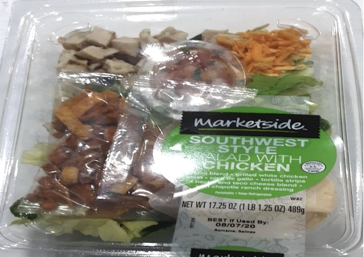 Walmart Market Südwestart-Salat mit Huhn enthält potenziell kontaminierte Zwiebeln als auch, und ist derzeit nicht verfügbar für den Kauf bei der größten Einzelhändler der Welt. (Verwandt:15 Beloved Walmart Foods Fans wollen Zurück.)