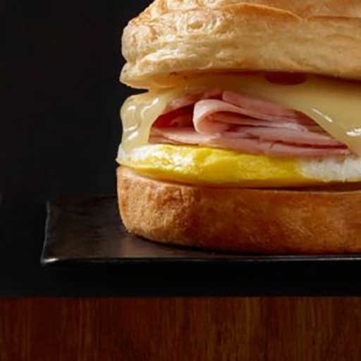 Slow-geröstetes Schinken- und Schweizer Frühstücksandwich