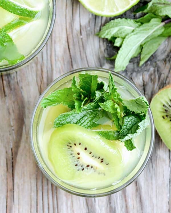Der zweite Bloat-Squinker auf dieser Liste enthält auch Melone, die als Diuretikum wirkt und wesentliche Elektrolyte liefert. Diese Version hat jedoch Kiwi, welche Forschungen deuten, Ihren Körper dieses schrecklichen Magenbeutels zu befreien. Eine Studie von Forschern in Pacific Asia fand dasReizendarmsyndrom (IBS) Betroffene, die zwei Kiwis pro Tag für vier Wochen gegessen haben, hatten weniger Verstopfung und eine allgemeine Verminderung von IBS-Symptomen als diejenigen, die es nicht getan haben.