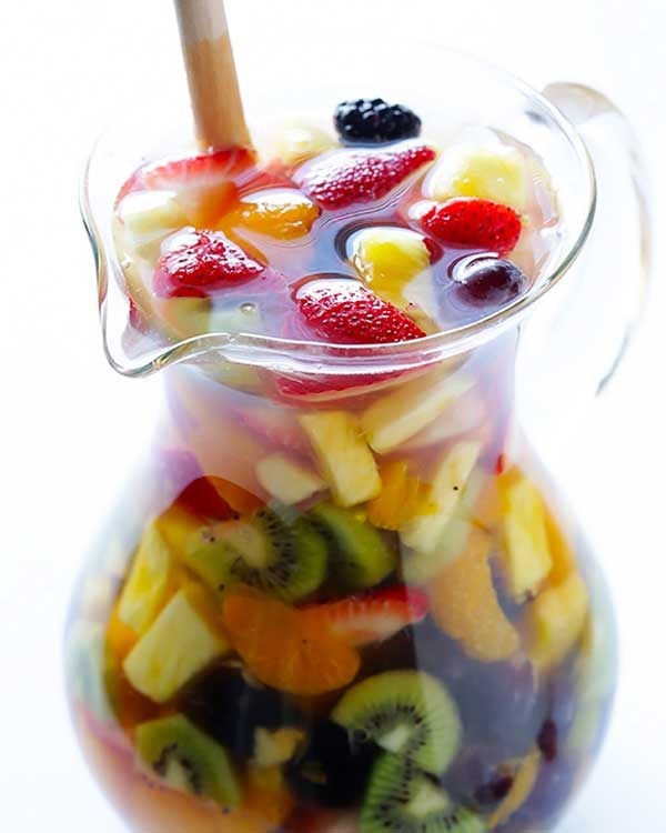 Als ob dieser bunten Krug ist die Tatsache nicht genug verlockend, dass sie mit Nährstoffen ist voller macht es noch attraktiver. Jedes Glas wird mit Trauben, Kiwi, Ananas, Pfirsich, Beeren, Limettensaft, Honig und Weißwein gefüllt. P. S. Limes ist böse hoch in Flavonoide und limonoids, Antioxidantien, die zum Schutz gegen Krebs und die Verdauung. Und wenn Sie schauen, um den Zucker Zahl zu senken, lassen Sie einfach den Honig. Danke schön!