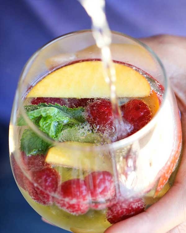 Moscato hat einen ziemlich süß rep, aber dieses Rezept enthält nur 8 Gramm. Wenn das nicht genug ist, um Sie sippin, dann ist dies Sangria mit Himbeeren, die einen schönen Ernährungsschlagender Erfolg; abgesehen von niedrigen cal und voller H2O zu sein, enthalten sie starke Antioxidantien und entzündungshemmende Eigenschaften zellschädigende freie Radikale zu bekämpfen.