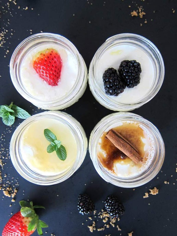 Neben vielen Funktionen arbeitet der Instant Pot als Joghurthersteller. Obwohl viele Rezepte für hausgemachtes Joghurt einige schwer zu findende Zutaten einschließen, wird dieses Leben nur mit nur zwei einfachen:griechischer Joghurt und Vollmilch. Sie können es direkt in Gläser schaffen - Sie erspart Ihnen diese Zeit, die Joghurt in Portionen schöpfen, sobald es fertig ist. Seien Sie vorsichtig auf den hohen Zuckergehalt, insbesondere beim Hinzufügen von fruchtigen Belägen, und entscheiden Sie sich für eine fettarme Milch für weniger gesättigtes Fett.