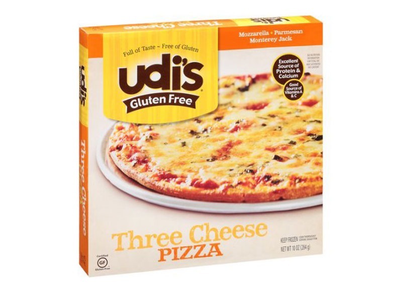 UDIs Kuchen hat ähnliche Ernährung in Smart Mehl, aber es ist niedriger in Natrium. Nehmen Sie diesen GF-Standard auf, der mit braunem Reismehl hergestellt ist, und Mischung aus Mozzarella, Fontina und Romano-Käse.