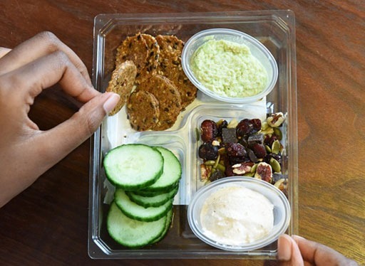 Mit nur 40 kaloriener Kalorien als der Uber Populäre Protein Bistro-Box, ist dies einer der besten Mini-Mahlzeiten, die Sie am Kaffee gemeinsam finden. Verpackt mit einem wild geräucherten alaskischen Lachs-Käse-Spread, Edamame-Hummus, dunkler Schokoladenpfad-Mix, weizenfreier Cracker und Gurken, diese Box serviert eine angenehme Kombination von salzigen und süßen Aromen und überflutet mit Herz gesundOmega-3-Fettsäuren- Aber dank seines Namens haben Sie wahrscheinlich so viel angenommen.