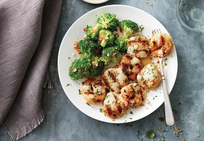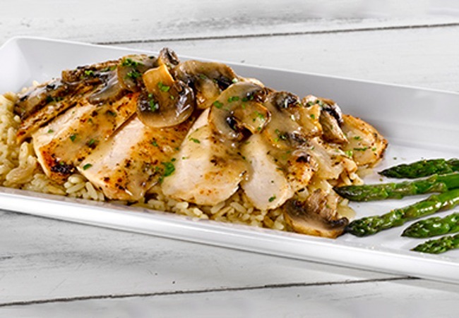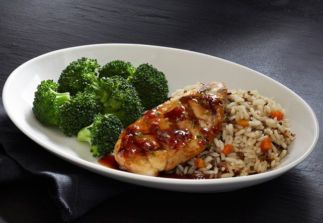 520 Kalorien, 18 g Fett (5 g gesättigtes Fett), 1,710 mg Natrium, 36 g Kohlenhydrate (3 g Faser, 3 g Zucker), 54 g Protein (beinhaltet Wild Rice Pilaf und Brokkoli)