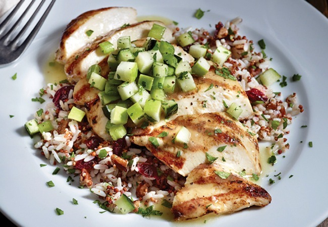 Applebee erstellte ein ziemlich ausgewogenes Gericht mit Ganzkörnern, mageres Protein, gesunde Fette aus Pekannüssen, und sogar eine Portion frischer Früchte - wir wünschten, es wünschte nur etwas weniger Salz als inbegriffen.
