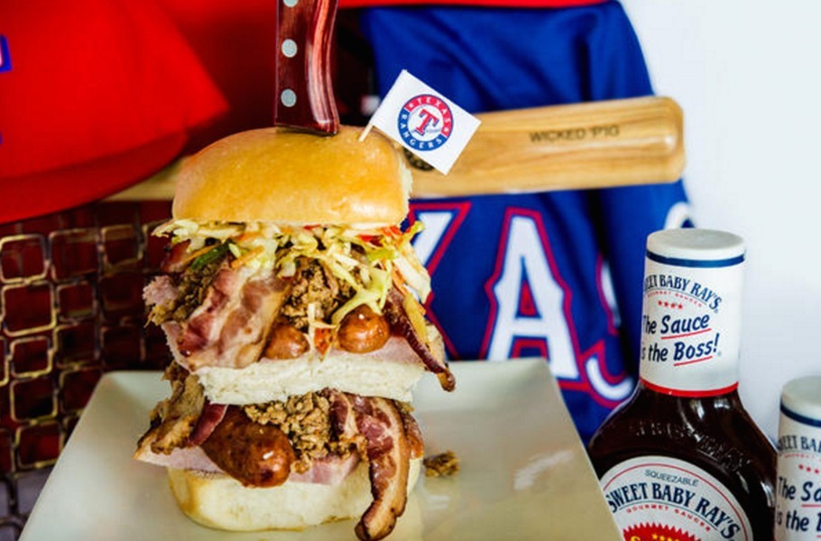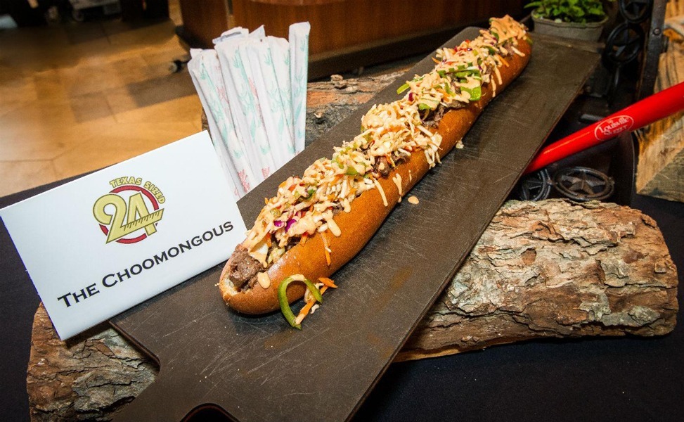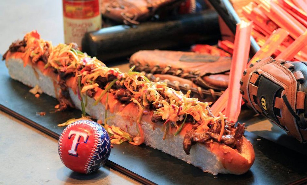 Dieses zwei Fuß koreanisches Rindfleisch Sandwich, benannt nach den Rangers outfielder, Sin-Soo Choo, kommt hoch mit Krautsalat und Sriracha Mayo gestapelt. In der Tat häufen sie auf so viele Toppings, dass es seine eigene Tragetasche muss. Dieses humungous Sandwich kommt zu einem hohen Preis für Ihren Geldbeutel und Ihre Gesundheit. Für $ 26 erhalten Sie zwei Füße von salzig, Fett Rind-, kalorienreiche Brot und Kleckse von Arterien verstopfen Mayo. Sagen Sie einfach nein zu diesem massiven Spiel Tag essen.