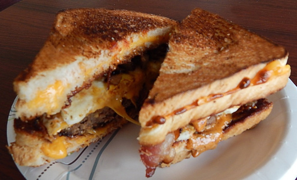 Was passiert, wenn eine Kuh, ein Huhn und eine Kartoffel, die sich entscheiden, zu heiraten? Sie schaffen, was die Yankees 'kreativ der Barnyard-Hochzeit dubbbt. Dieses aufragende Arterie-Verstopfungssandwich verfügt über ein Hashbraun auf einem gebratenen Hühnchenkanal auf einem Cheddar-Käse-erstickten Rindfleisch-Patty. Wenn Sie ein ähnliches Frühkonzern von McDonalds zusammenstellen würden, würde es bei 1.180 Kalorien zusammenlaufen und fast den ganzen Tag Salz und Fett verpacken. AngesichtsFastfood Serviergrößen neigen dazu, auf der kleineren Größe zu sein, wir schätzen diese Hochzeit, die schlecht ist, ist sogarmehr gefährlich für Ihre Taille.