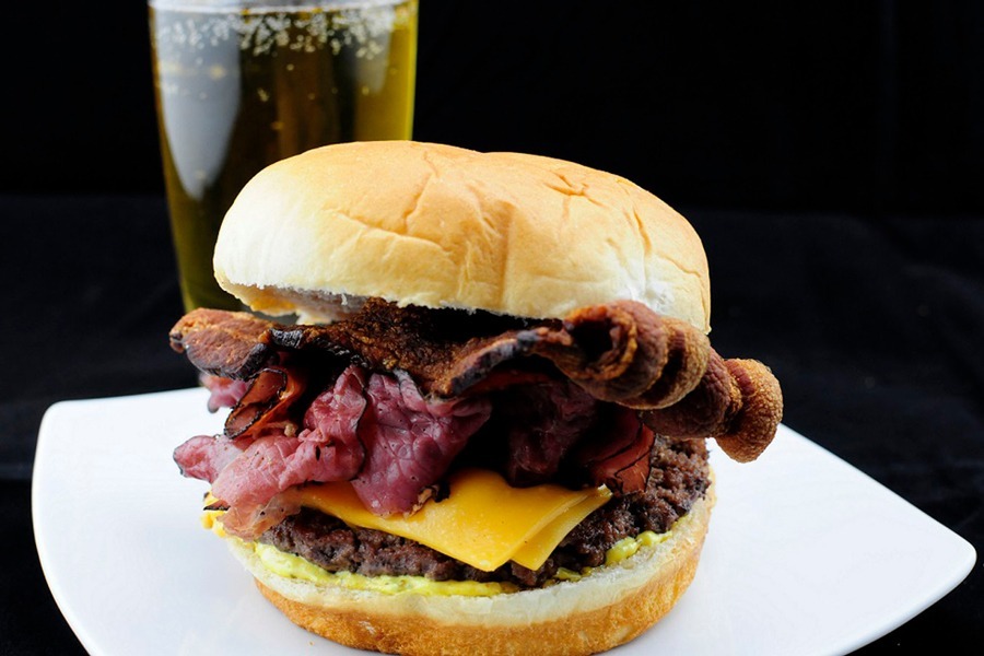 Was zum Teufel ist ein g.o.a.t., fragst du? Die Ziege. Oder der "größte aller Zeitburger" ist ein Rindfleischpati, der mit Speck, Pastrami, amerikanischem Käse und einem speziellen "G.o.a.t." auftauchte Soße. Im Grunde ist es also ein fetthaltiger Fleischpasta, der mit mehr Fett und einem Treffer von Zucker und Natrium gekrönt wird. Obwohl die Yanks nicht die Ernährungsstatistiken für diesen bösen Jungen zur Verfügung gestellt haben, gehen wir hier auf einen Gliedmaßen und sagen, dass dies ein bestimmtes "nicht" ist "