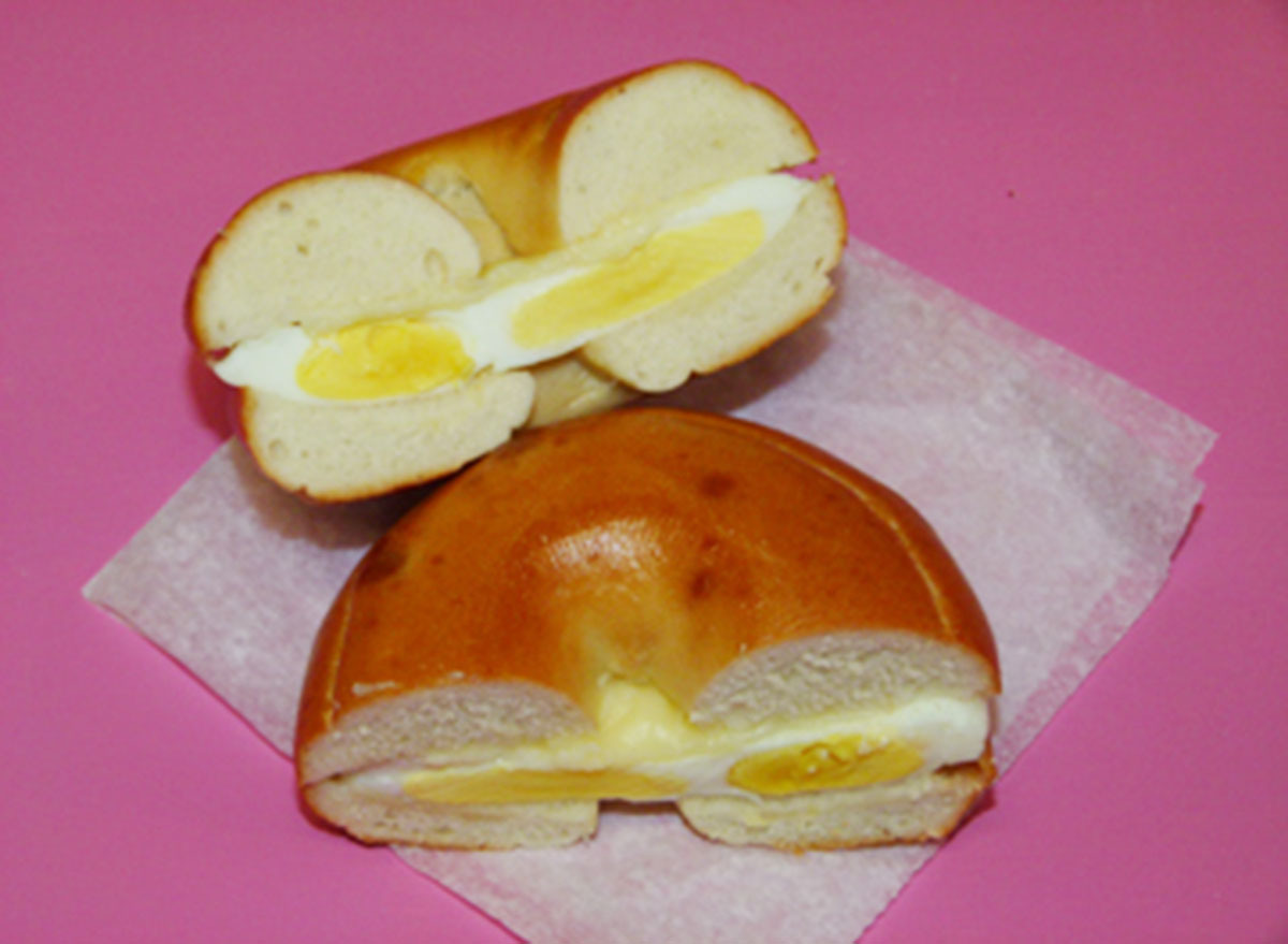 Worst: 2 Eier auf einem Bagel mit Speck und Käse