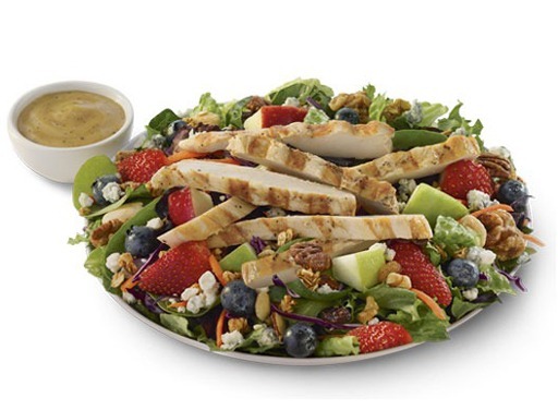 "Ich muss zugeben, dass ich kein Huhn mag, also würde ich ein kleines Waffelfries bestellen (dekadent, ich weiß, aber befriedigend) und ein großerFruchtsalat. Für diejenigen, die Fleisch wünschen, würde ich das gegrillte Hähnchensandwich vorschlagen, das drei Gramm Faser und 30 Gramm Protein für nur 320 Kalorien liefert. Ich würde auch Früchte für das Dessert vorschlagen, weil Sie damit nie etwas falsch machen können. "-Keri Gans., RDN, Autor von Die kleine Änderungsdiät