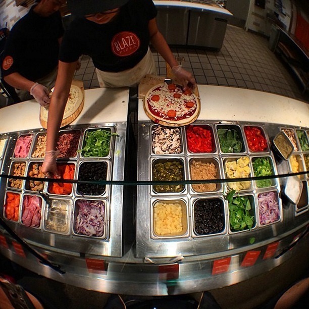 WennChipotel und Pizza Hut hatte ein gesundheitsbewusstes handwerkliches Baby, der Build-your-own Pizza-Shop, es wäre. Blaze trägt jeden Käse, Veggie, Fleisch und Soße unter der Sonne (für real, obwohl), und Sie können so viele Add-ons wie Ihre Gaumen für nur 7,65 $ verarbeiten können hinzufügen. Der beste Teil ist: Dank ihrer super-heißen Ofen glühen, die Torten kochen in nur 3 Minuten! Jetztdas ist das einig ernsthaft schneller Service!