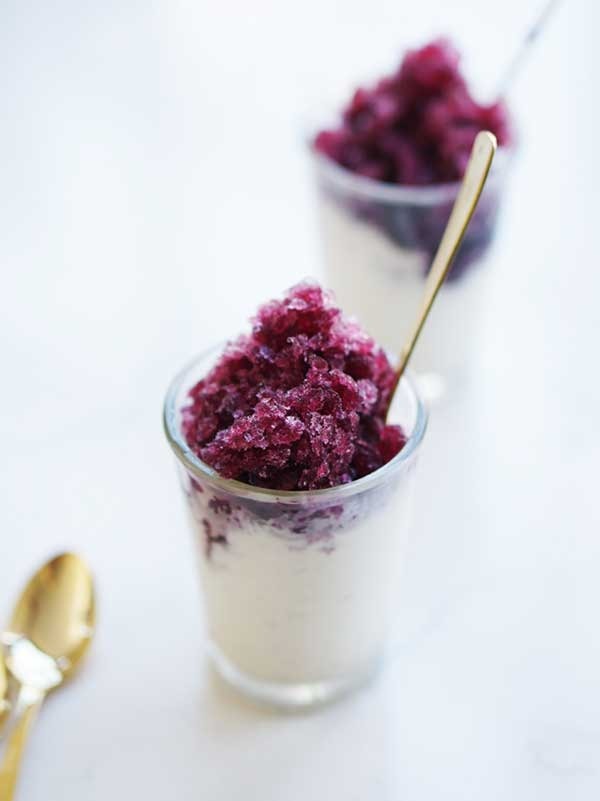 Rotwein-Granita mit Vanilleeis