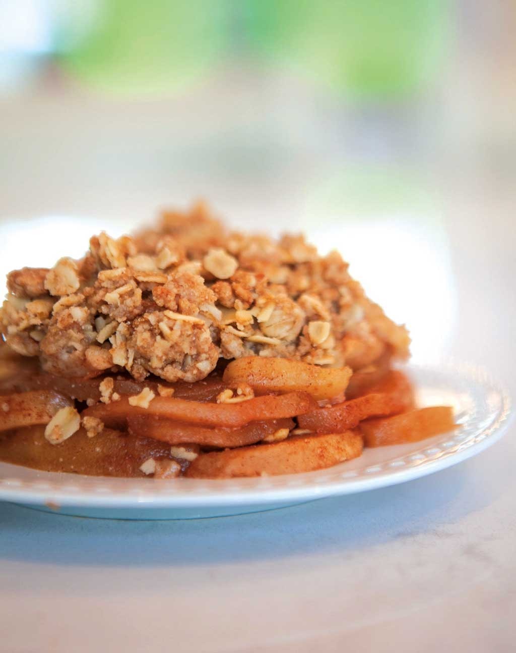 - Für das zerbröckeln: in derselben Schüssel (nicht waschen), kombinieren Sie den Mehl,Haferflocken, brauner Zucker, Zimt und Salz. Falten Sie die geschmolzene Butter zusammen, bis die Mischung feuchte Büschel bildet.