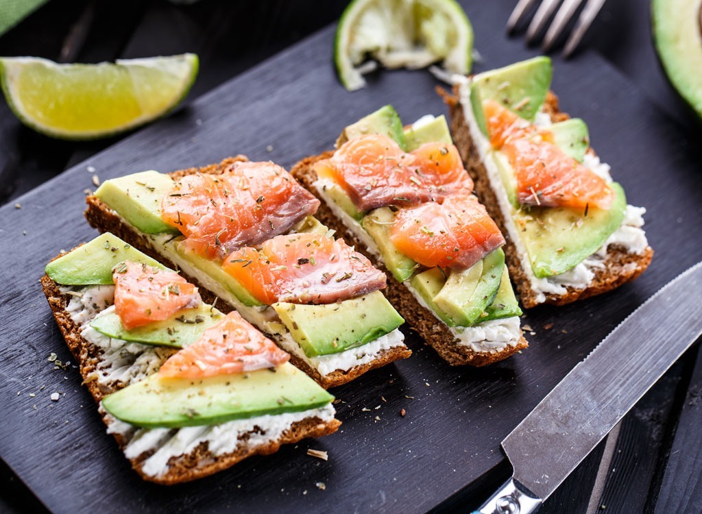 Wer hat gesagt, der Avocado Toast-Trend war nur für Brunch? Dieses offengedeckte Sandwich ist ein Favorit von uns, weil er voller Protein und Faser-zwei Makronährstoffe ist, die bekanntermaßen Gefühle der Fülle ausdehnen und bald nach dem Mittagessen in Ihre Snack-Schublade erreichen. Aber gewarnt werden: Verwenden Sie nicht mehr als die Hälfte dieser grünen Früchte auf einmal; Mit kaloriendichten gesunden Fetten beladen, können Avocados überschüssige Kalorien in Ihre Ernährung schleichen.