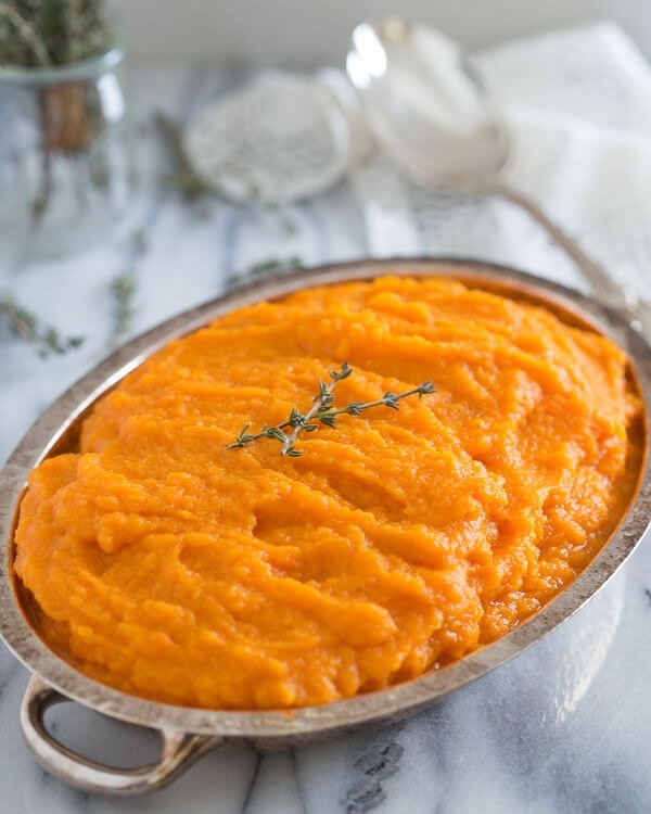 Anstatt eine Seite der langweiligen Kartoffelpüree zu dienen, berücksichtigen Sie diese Reichehohes Fieber Püree mit veganfreundlicher Vanille-Mandelmilch und Ahornsirup. Die Immunitätssteigerung und gesunde hautfördernde Karotten verleihen diesem Rezept seine wunderschöne Bernsteinfarbe sowie ein leicht herzhafter Geschmack, der den süßen Parsnip ausgleicht. Mmmm! Sekunden, bitte!