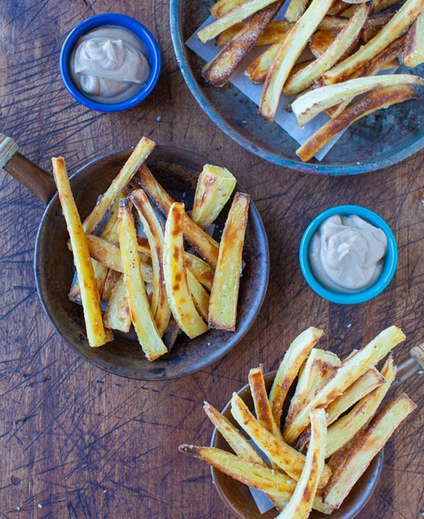 Gebackene Parsnip-Pommes mit cremiger balsamischer Reduktion