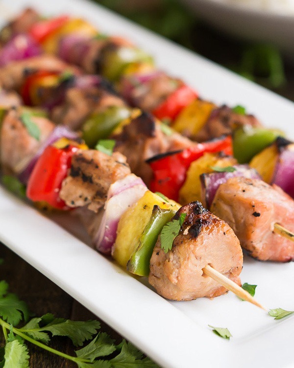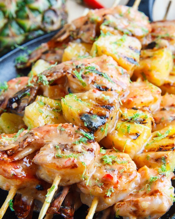 Gegrillte Kokosnuss- und Ananas-Garnelen Kabobs