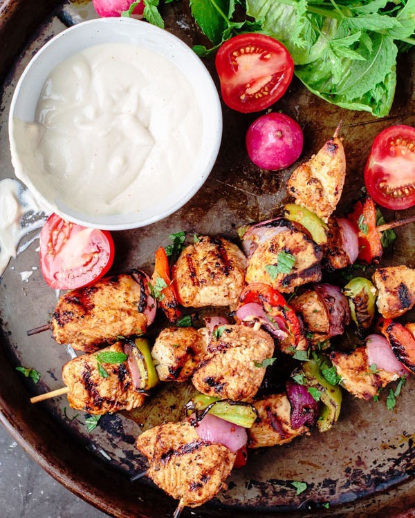 Gegrillte Hähnchenkabobs mit Tahini-Sauce