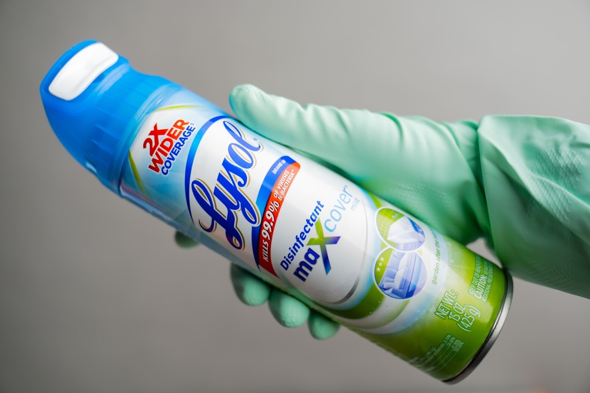 Die Umweltschutzagentur (EPA) hatbewiesen, dass zwei Desinfektionsmittel-Lysol Desinfektionsmittelspray und Lysol Desinfektionsmittel Max Cover-Nebel - töten Sie den Coronavirus tatsächlich, wie getestet. Sie haben jedoch eineListe der fast hundert Desinfektionsmittel, die sie genehmigen gegen COVID verwenden (obwohl sie noch nicht getestet wurden), weil sie wirksam sein sollten.